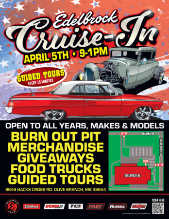Bring your family and friends to the EDELBROCK SPRING CRUISE-IN from 9am-1pm on April 5th (rain or shine)!