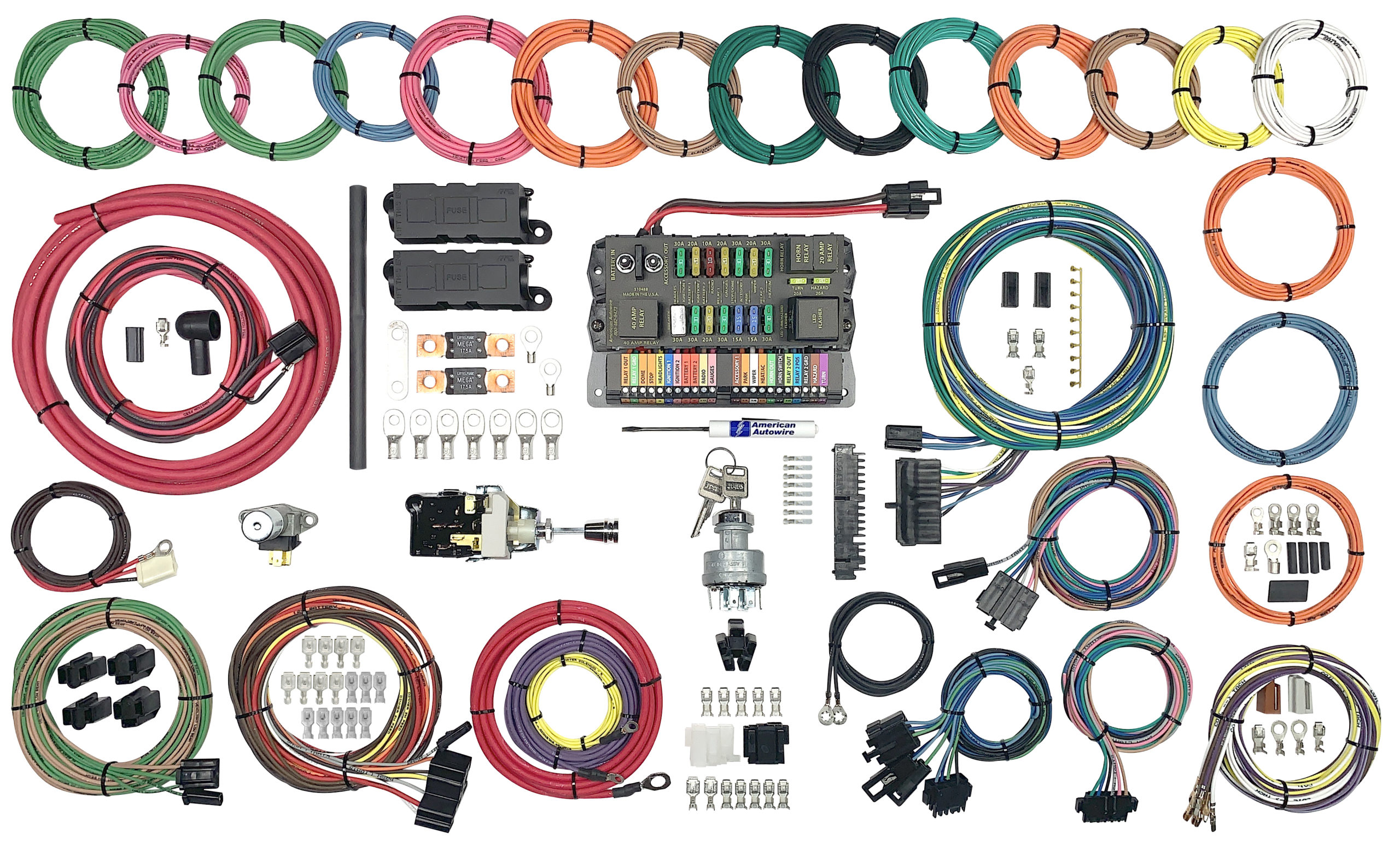 American Autowire produces a huge selection of wiring harnesses, accessories, kits, and components that any true rodder or restorer can appreciate. We offer over 9,000 original restoration wiring harness, switches, battery cables, and spark plug wire set combinations in our Factory Fit product line, complete modified restoration kits in our Classic Update Series, and provide integrated fuse panel and modular fuse panel street rod wiring through our Power Plus, Builder and Highway series.