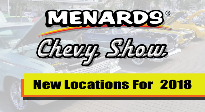 2018 Menards Chevy Show Schedule Announced with New Locations Event Coverage | Posted: 01/31/2018Posted by: Menards Chevy Show Share View More Menards Chevy Show4041 NE Lakewood Way, Suite 260Lee's Summit, MO, 64064816-246-8866View Company Profile
