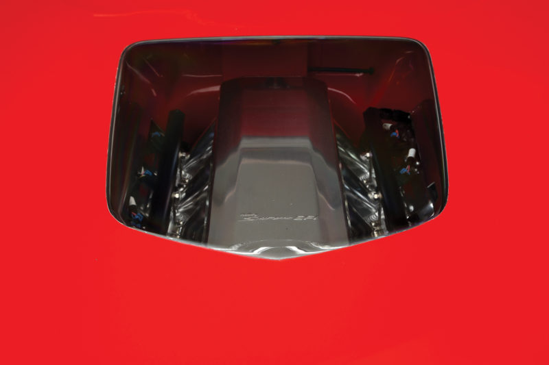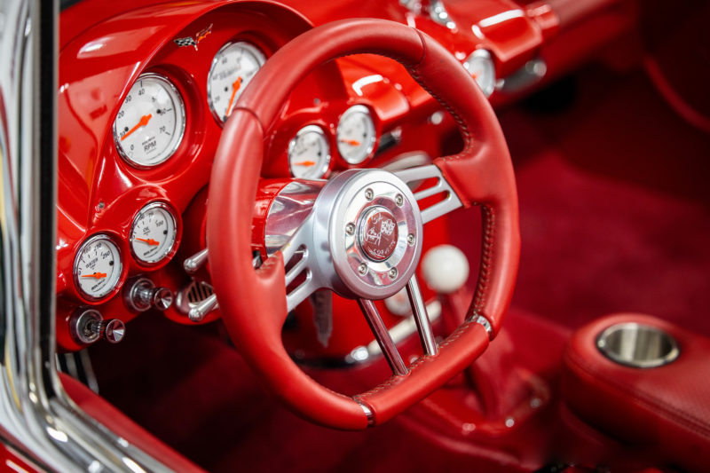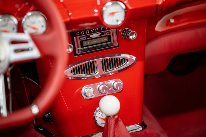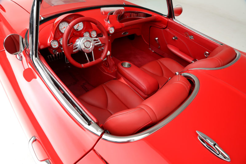 This 1962 Corvette Roadster is sure to garner attention with its combination of classic good looks and modern performance, all perfectly blended into a stunning show car. Notable features include a 376ci GM LS3 engine mated to a 4L65-E automatic transmission, Holley Sniper EFI induction system, Art Morrison chassis with C6 Corvette suspension, adjustable coilover shocks, custom 1957/1958 grille, frenched headlights, an electrically activated ZR1-style hood with Plexiglas engine-reveal insert, Magnaflow dual exhaust and much more! This classic American sports car — a true stand-out with its Salsa Red exterior and Flame Red interior — has been driven less then 200 miles since completing its restoration.