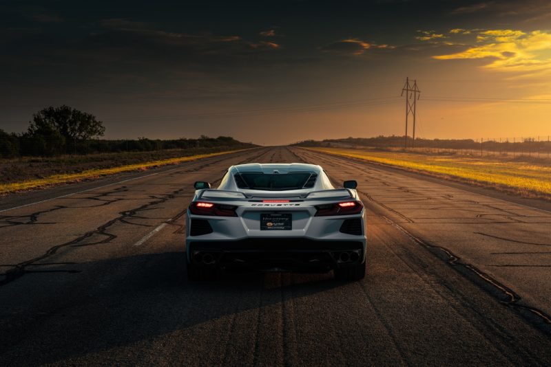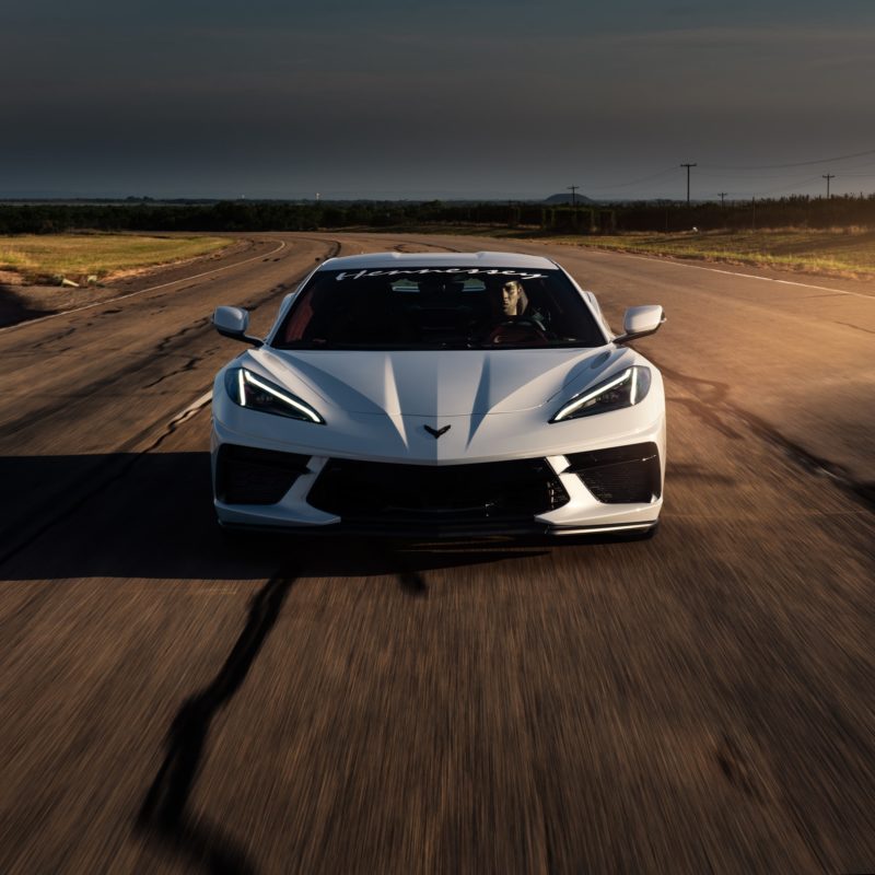 On May 8, 2020, John Heinricy drove a Hennessey-prepared C8 Corvette to a top speed of 205.1 mph, as verified by VBox GPS, making Hennessey’s Vette the first C8 to break the 200-mph barrier. Testing was performed on an 8.0-mile high-speed oval at the Continental Tire Proving Grounds in Uvalde, Texas.