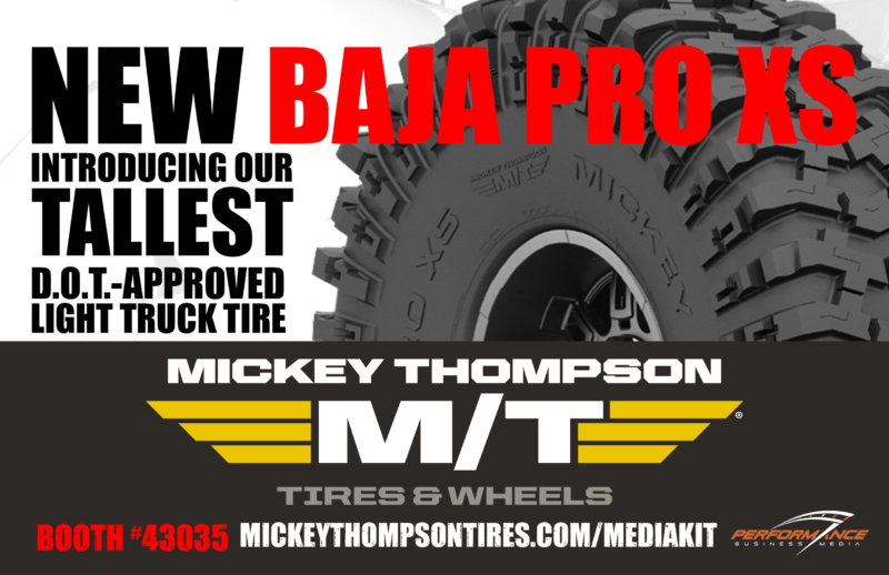 The new Baja Pro XS is a street-legal, extreme mud tire available in sizes from 35-inch to a monster 58-inch application, making it one of the most aggressive truck tires in the company’s lineup. It will be joined by 15 new sizes of the Baja Boss, Mickey Thompson’s ultra-premium Extreme Mud Terrain radial tire featuring an asymmetric tread pattern and PowerPly XD™ 3-ply sidewall construction.