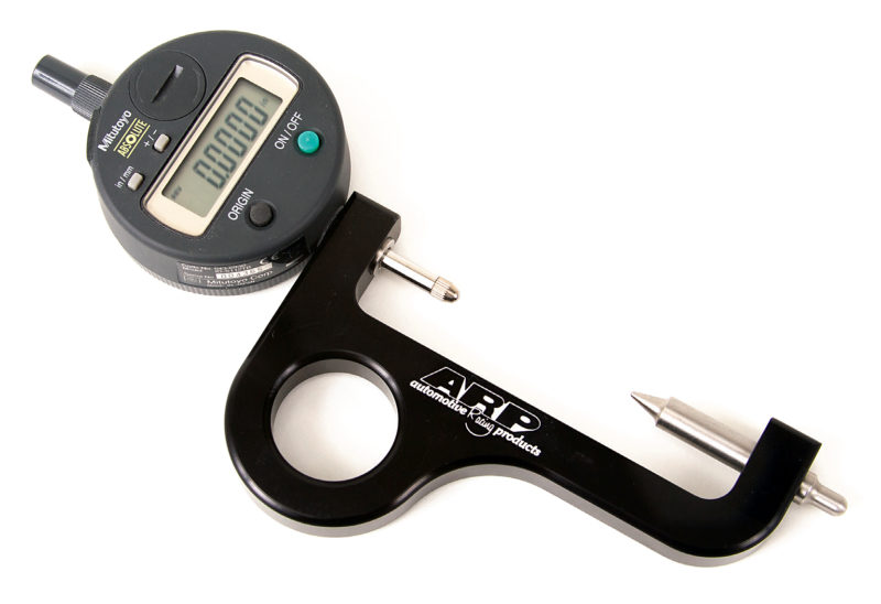 ARP highly recommends using a stretch gauge when installing rod bolts and other fasteners where it is possible to measure the length of the bolt after tightening. It is the most accurate way to determine the correct clamp load in the rod bolt. When the bolt has stretched the specified amount, the correct preload, or torque, has been applied. Our new digital stretch gauge offers precision to 0.0001˝ with an easy-to-read display.