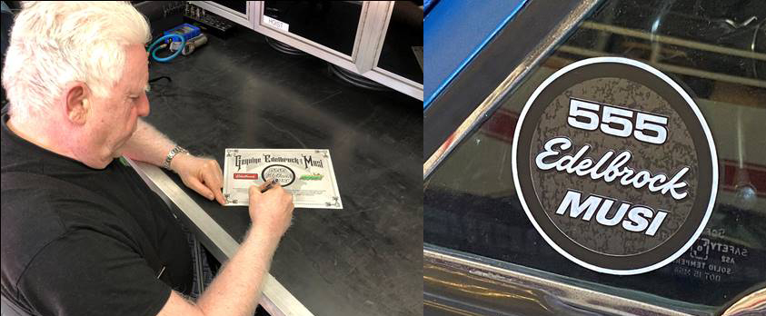 BUYERS OF EDELBROCK – MUSI 555 CRATE ENGINE RECEIVE SIGNED CERTIFICATE OF OWNERSHIP PLUS 555 DECAL