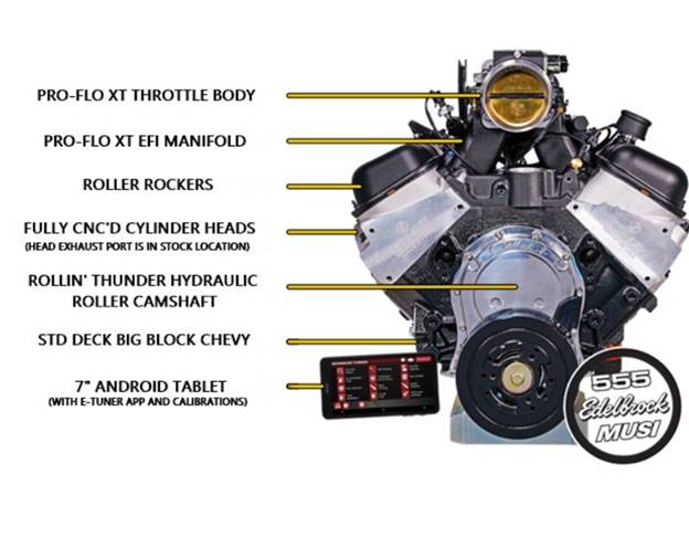 Now Included With High Performance Edelbrock-Musi 555 Crate Engine