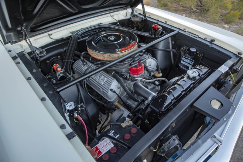 Engine options include: a 331 ci Shelby Performance Aluminum Engine, 425 horsepower as standard, a 364 ci Shelby High Performance Aluminum Engine as an option, or an OEM 289 ci HI-PO as a third option.