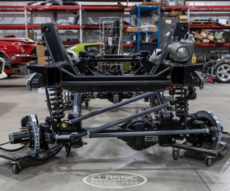 The Roadster Shop RS4 Ford Bronco chassis features 5-inch-by-2.5-inch .188 wall frame rails, which adds a significant amount of strength compared to the standard version, Classic Recreations said. Eliminating the need for a body lift, Roadster Shop increased the ride height for a more aggressive stance.