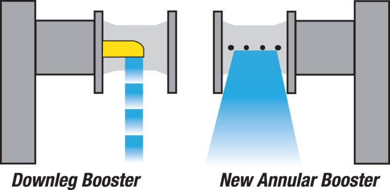 The new booster features eight equally spaced orifices which are fed from fuel circling around the entire booster. This design creates a spray pattern that is similar to that of a fuel injector which improves the atomization of the fuel droplets for improved emulsifying with the air. The results of this efficient mixture can improve the idle quality, reduce a flat spot or over rich condition and improve the throttle response. Overall, the fuel delivery is improved immensely over the original, albeit effective, design.