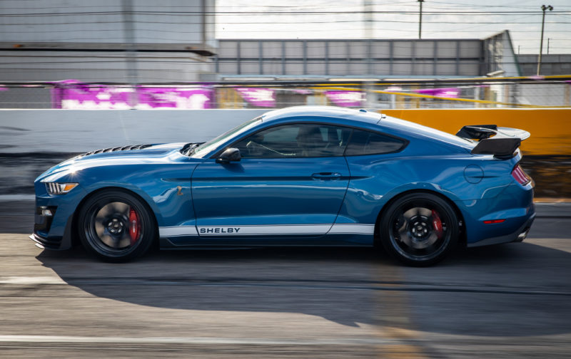 The 2020 Ford Mustang GT500 marks the return of the fabled model to the Ford line-up after a six year absence. Only 5,000 of these high-performance Mustangs — the quickest production Mustang ever— will be released to the public! This legendary muscle car is powered by a 760hp 5.2L supercharged V-8 engine backed by 7-speed dual-clutch automatic transmission propelling it from 0-60 mph in 3.3 seconds. It stands out with a Ford Performance Blue exterior and an Ebony leather interior with grey accents and nearly every extra-cost factory option available, including carbon fiber track package, 20-inch carbon fiber wheels, Recaro leather-trimmed seats, technology package, and much more!