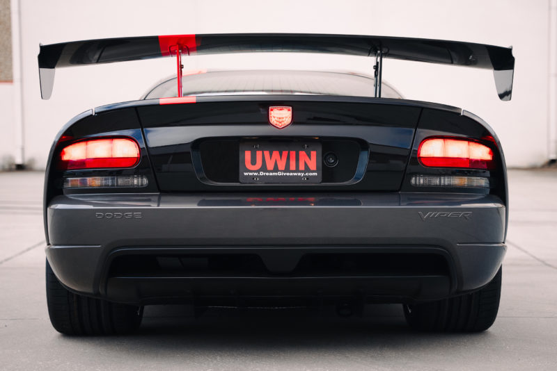 The Grand Prize Vehicle: This 2009 Dodge Viper ACR, which is featured in the Viper Dream Giveaway, has been in climate-controlled storage since birth and has only 930 miles on the odometer! Powered by an 8.4L V-10 engine backed by a 6-speed manual transmission, this 600hp Viper features a Graphite Metallic Clear Coat exterior paired with a Black interior. Extra-cost factory options include the ACR package, which upgrades the base Viper with 18x10 and 18x13 forged Sidewinder wheels, ACR badge, competition suspension, front splitter spoiler, rear winged spoiler, and the optional ACR driver stripe.
