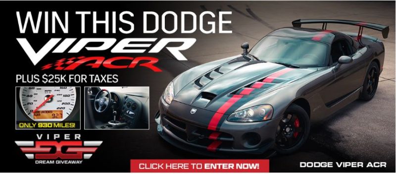 The Viper Dream Giveaway a nationwide drawing sponsored by New Beginning Children's Homes–a charitable organization, has officially launched! One lucky winner will go home with a 2009 Dodge Viper ACR! Also included in the grand-prize package is $25,000 towards the prize taxes for the winner.