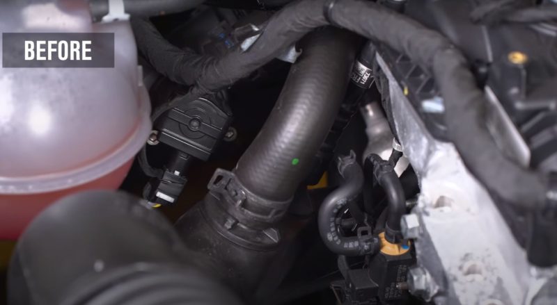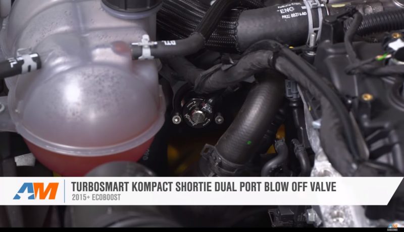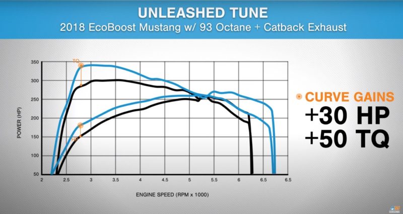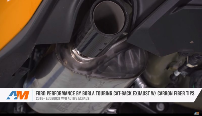 Moving into the sound and power aspect of the build, Justin installs a Ford Performance by Borla Touring Cat-Back Exhaust and a Turbosmart Blow Off Valve onto the EcoBoost, which gives the car a little more volume, both from the exhaust and the spooling turbo. Lastly, to tie everything together, Dugan pairs the performance parts with an Unleashed Tune, resulting in most noticeable gains under the curve.