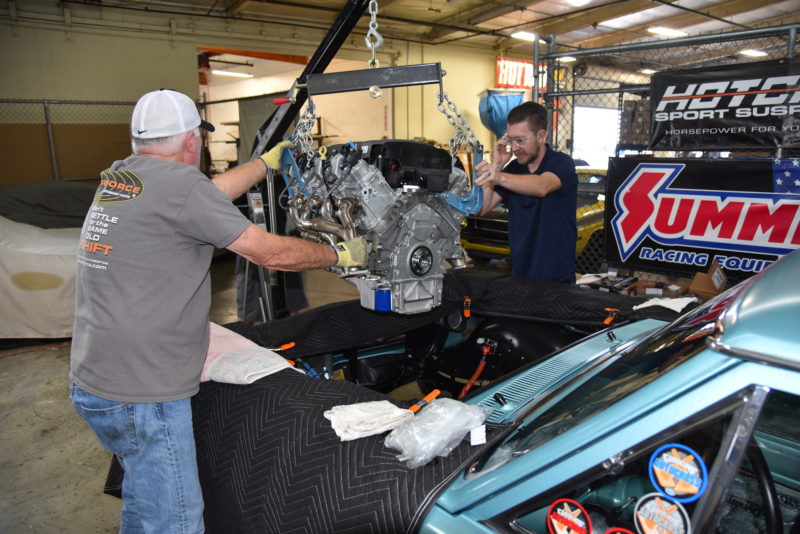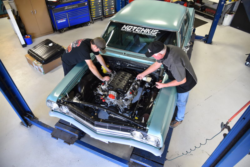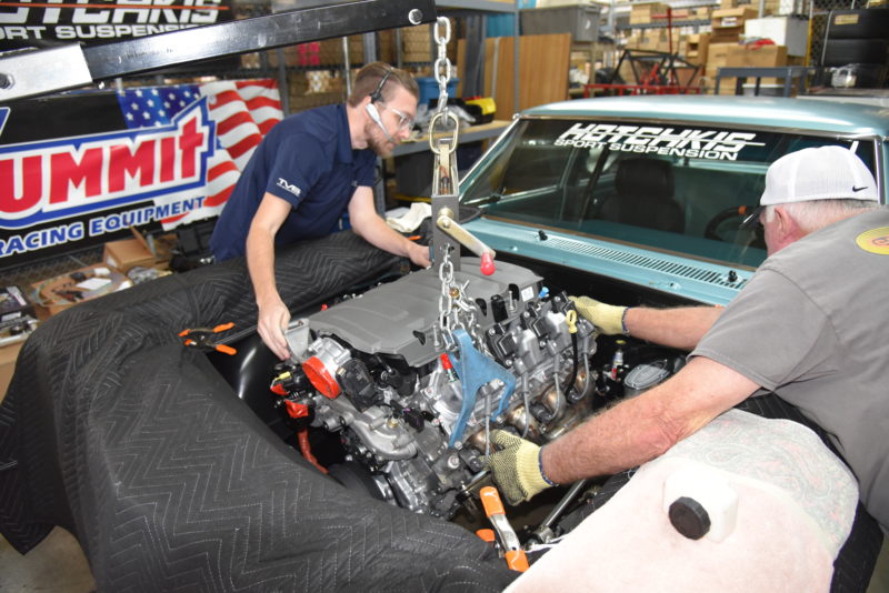 The Hotchkis Installation Team recently helped autocrosser Dick Eytchison with the installation of a Chevrolet Performance LT376/535 crate engine and a T56 Super Magnum transmission in his well prepped more-door ’65 Chevelle.
