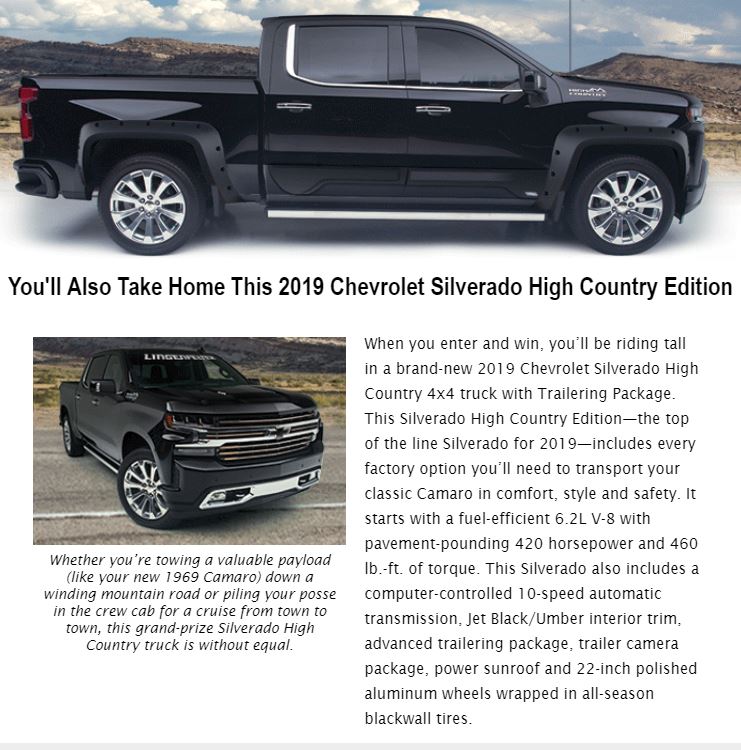 The Show & Tow Dream Giveaway, a nationwide drawing sponsored by New Beginning Children’s Homes, ended on September 24, 2019. Damon Jensen, age 44, from Texas, is the grand-prize winner. Included in the grand-prize package was a fully restored 1969 Camaro, a 2019 Chevrolet Silverado High Country Edition 4x4 truck, a Sundowner open-car hauler and a $10,000 bonus prize package from Eastwood, —plus $30,000 towards the prize taxes!