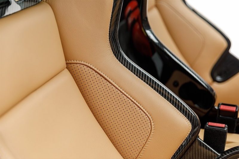 The interior features gloss black carbon dash, seats & rear seat delete, all topped off with luxurious light cognac aeronautical specification leather as used in Gulfstream jets. Our Alcantara steering wheel is finished off with a billet 12 O’clock Marker, as is the 5 axis milled Sport button surround & vanity plate with the commissioner’s details.
