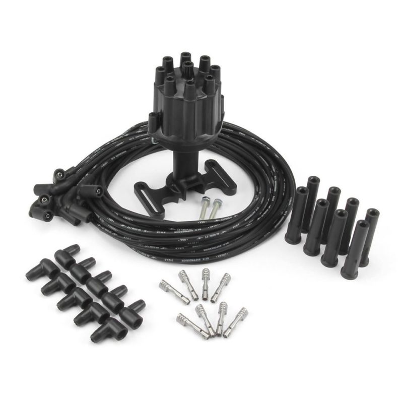 The LS Classic Distributor kit includes the plug wires with pre-installed 90 degree coil boots, straight unterminated spark plug boots (plug wire crimpers are needed to complete the installation), 90 degree distributor boots, distributor housing, cap, and terminals. Lokar also says the plug wires can be purchased separately.