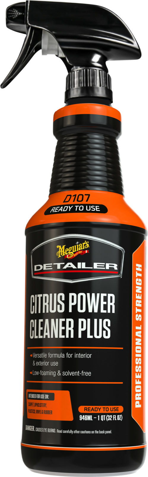 Meguiar’s® Citrus Power Cleaner Plus is a low-foam solution to quickly and completely remove grease, grime and stains from carpet, upholstery, plastics, engines, wheel wells, tires and more! This solvent-free formula is both powerful and effective for quickly cleaning interior and exterior surfaces while leaving behind a clean, pleasant-smelling citrus scent.
