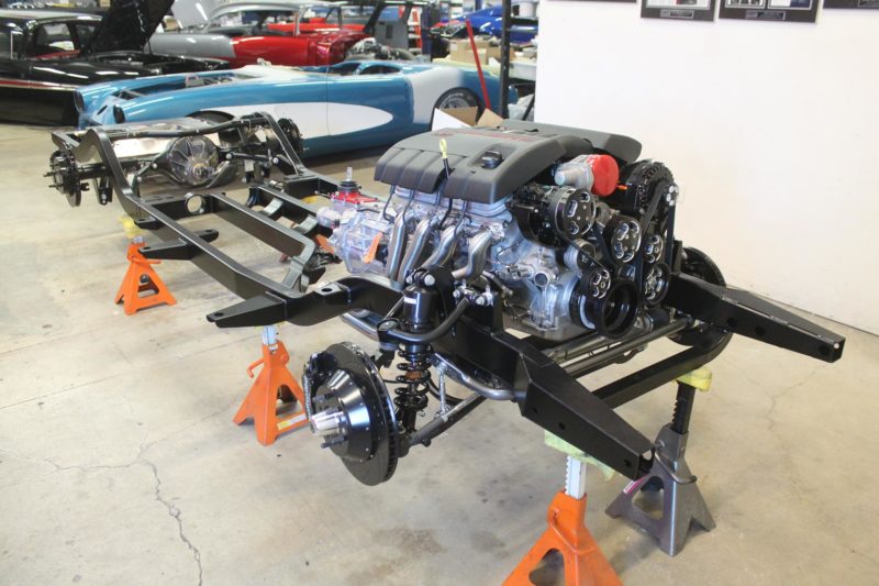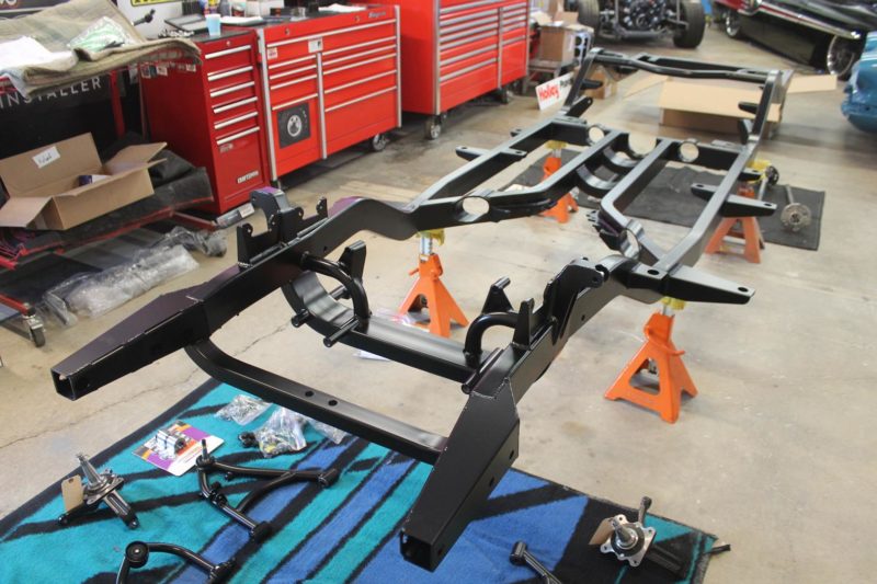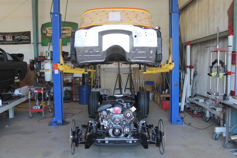 PS...don't worry if you are a gasser lover (so are we)...our customer put the 57's chassis under his 55 Chevy.