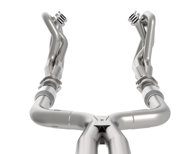 The Second Stage adds a Resonator Delete X-Pipe. The X-pipe attaches to the front connection pipes of the Header & Connection Kit and replaces the OEM adapters. Mid-pipes included with the X-pipe have a 2-3/4" OD outlet that fits to the factory exhaust using two-bolt clamps (included) just ahead of the rear axle.