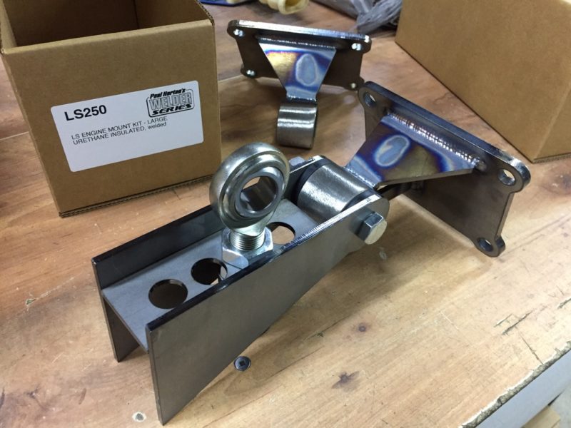 Welder Series has added another universal engine mount to their popular line: a urethane insulated engine bracket with trim-to-fit frame plates for the LS series engine. Now you don't have to use an adapter plate to go from the LS block to a small block Chev insulator to the stock frame mount - just position the engine where you want it, measure and trim the frame plates, and weld them in!