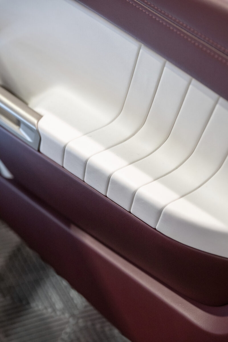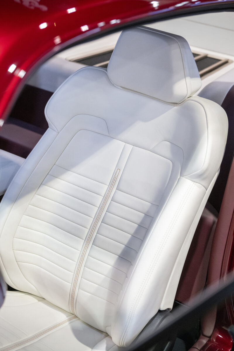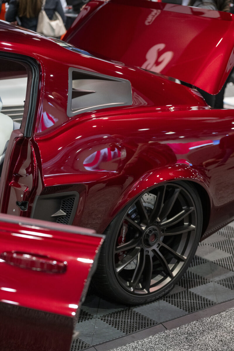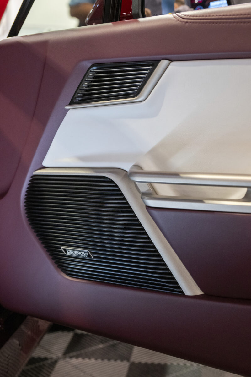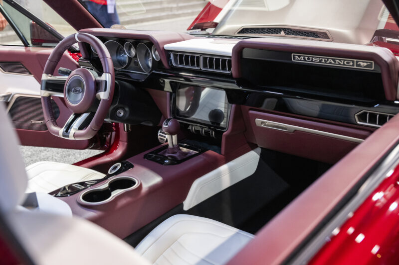 When East Bay Muscle Cars' and DJ Designs' 1968 Ford Mustang was unveiled at SEMA, the crowd literally stopped in their tracks. This beauty named Rampant, is a gleaming red with a supercharged Gen 2 Coyote engine. This automotive work of art truly looked like a million bucks. With an interior decked out in Moore and Giles Carlyle Snow and Carlyle Mulberry leather, the attendees marveled at the meticulous upholstery that brought this hot rod back to life.
