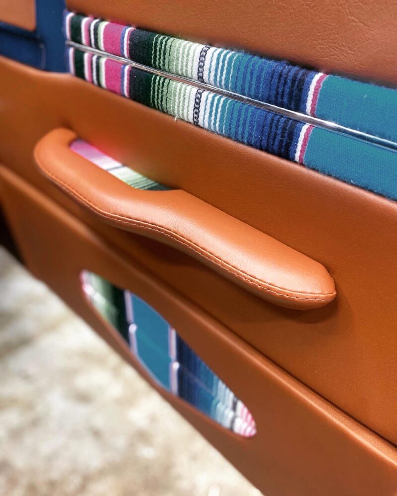In 2009, after a few years of working at a local shop, Donny adopted a son. When work was slow, the shop he was working at would let people go and would tell them to call back after the slower seasons when work might pick up again. This inconsistent schedule made Donny realize he wanted more for his son and needed to find a better job. Needing to start somewhere, Donny started his own business running ads for headliners and quickly realized he could make more in a day than he previously was able to make in a week. Soon after, Donny took the money he had and bought a used sewing machine and got to work making “every mistake imaginable” until he got better. Over the years, he would visit Phil Cato at his former shop in Atlanta to pick his brain and hang out. Cato introduced Donny to new techniques, gave him tips, and ultimately introduced him to Moore and Giles Leather. Now, Donny himself uses Moore and Giles on the majority of his interiors and credits his amazing team, including life-long friend David and his brother Dennis, for the success they have seen over the years doing what they love.