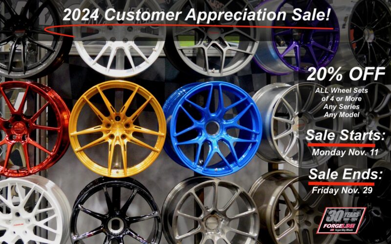 The 2024 Forgeline Customer Appreciation Sale Starts Now! Press Release | Posted: 11/11/2024Posted by: Forgeline Motorsports Share View More Forgeline Motorsports3522 S. Kettering Blvd.Dayton, Ohio, 45439800-886-0093View Company Profile