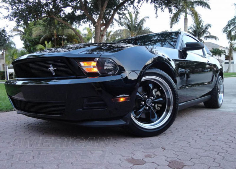 2010-2014 Mustang with 18x9 & 18x10 staggered black Bullitts.