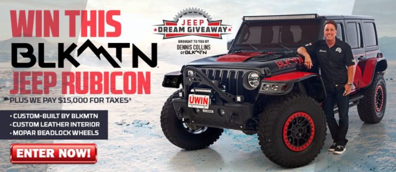 The Jeep Dream Giveaway brought to you by Dennis Collins of BLKMTN, a nationwide drawing sponsored by New Beginning Children’s Homes–a charitable organization, has officially launched! The winner of this adventure-ready prize package will take home a 2019 Jeep Wrangler Rubicon Unlimited 4x4 sporting a Black Mountain (BLK MTN) Stage III conversion. As with all Dream Giveaway promotions, we pay the prize taxes on behalf of the winner —$15,000!