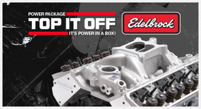 TORRANCE, CA (October 3, 2018) For a limited time only, Edelbrock is offering a FREE carburetor (up to a $350.00 value) with the purchase of any new Edelbrock Total Power Package Top End Kit or crate engine. It's no secret that a matched set of components is key to achieving the best performance possible from any engine. For more than 30+ years, the Edelbrock Total Power Package has been providing street performance enthusiasts with the perfectly matched set of top end components that totally eliminates the guesswork out of choosing the correct combination of parts. Each Total Power Package is a dyno-tested combination that includes the camshaft with lifters and pushrods, intake manifold, aluminum cylinder heads, timing chain, bolt kit, and gasket set. And many of these top end kits are the same ones used on the potent Edelbrock crate engines. And now, when you purchase any new Total Power Package system between now and December 31, 2018, Edelbrock will top off that engine with a FREE Performer, Thunder AVS or AVS2 carburetor for free! To qualify for the Top It Off free carb deal is easy; just follow these simple steps: For more information on these new heads and to view a complete spec chart, visit www.edelbrock.com/promotions Start Features Top It Off Promotion Details: