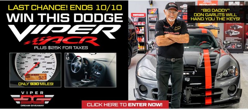 Viper Dream Giveaway ENDS 10/10 – Win the Viper and Drag Racing Celebrity Big Daddy Don Garlits Will Hand You the Keys!