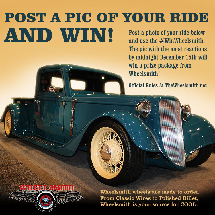 "It's that time to spread some Facebook fun. Post a pic of your ride on the Wheelsmith Facebook Page and win a prize package. Add the #WinWheelsmith to be eligible. The pic with the most reactions by midnight December 15th will be notified via FB. Be sure to share and get your friends to comment, like or share too."