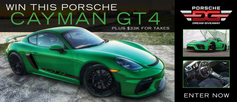 The Porsche Dream Giveaway, a nationwide drawing sponsored by New Beginning Children's Homes–a charitable organization, has officially launched! One lucky winner will go home with a 2021 Porsche 718 Cayman GT4. Also included in the grand-prize package is $33,000 towards the prize taxes.