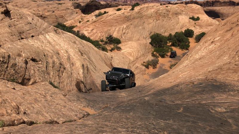 Jeep Safari: The Jeep Safari was started in 1967 by the Moab Chamber of Commerce. The very 1st trail was "Behind the Rocks Trail" (according to what has been told to the club President, the road was made or improved with a BLM employee and equipment.) The "Moab Rim" was then added the next year. In those days, individual ice cream packages were dropped by airplane to the trails at lunch. All the leaders were Chamber members, there was no charge or entry fee, and only a Saturday trail. To register you showed up Saturday morning and signed up for the trail you wanted. The Safari was run this way through 1982 at which point the BLM required a permit and insurance. The Chamber was no longer able to run the safari and approached the club to run this event.