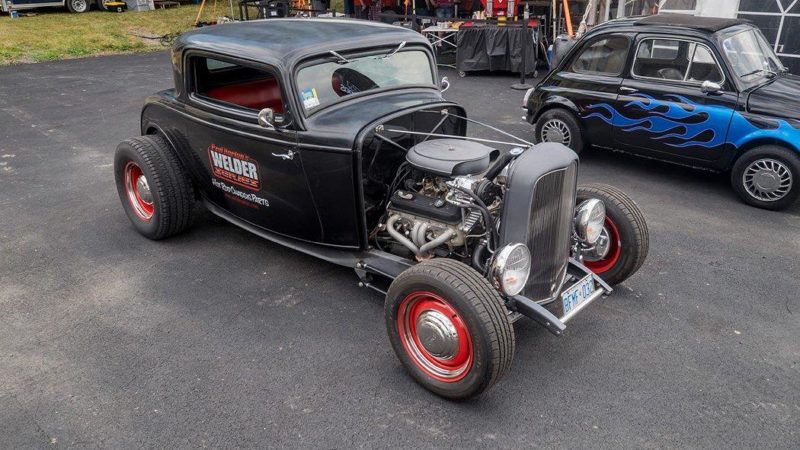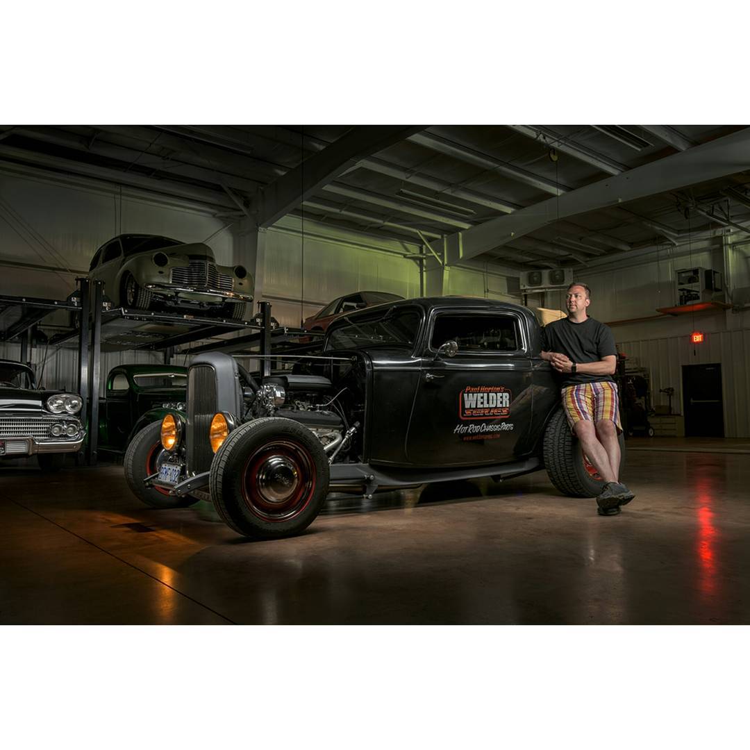 This build began as a way to showcase not only Welder Series parts, but also other products which we sold at the time. The body (Bear Fiberglass), wheels (Wheel Vintiques), air ride system (RideTech), steering column (ididit), u-joints (Borgeson), and instruments (Classic Instruments) were all items we used to carry when we built cars here. In 2005 when Paul Horton sold the business, the 32 was well underway and a pivot would have been difficult. The plan was to keep the body as-is (we even left the transport stickers on until they were taken off by a big rain in Louisville during the first week of being on the road) so that we could show people what they would get if they bought a Bear body. This decision created a road that was a challenge to stay on - every hole could only be drilled once, as there would be no interior to cover up a mistake.
