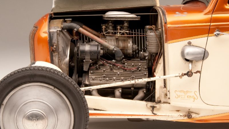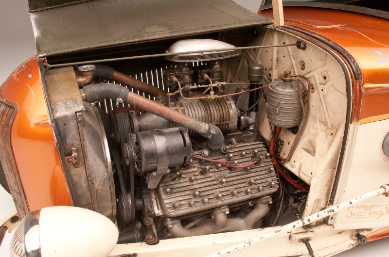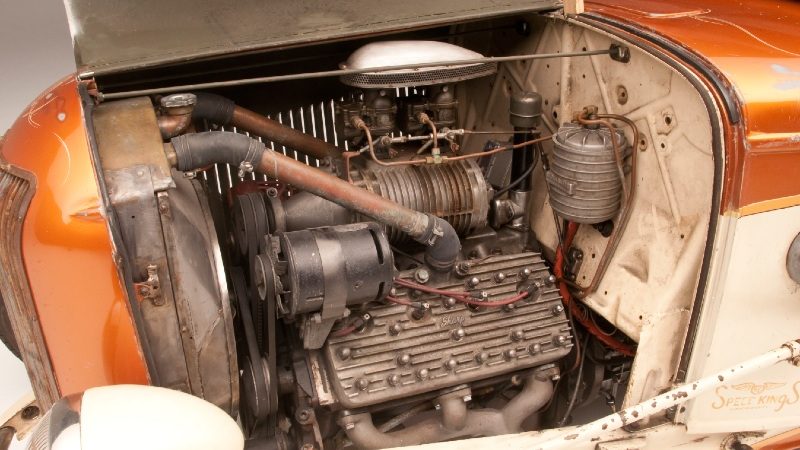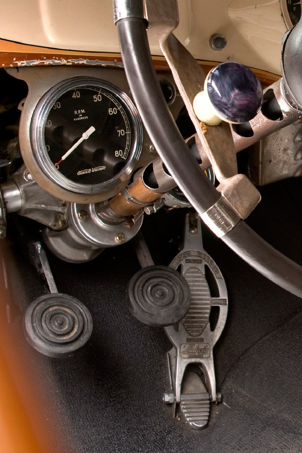 Powered by an 8BA flathead Ford mated to a 5-speed Tremec transmission.  Induction is handled by a vintage Italmeccanica blower and dual Stromberg.