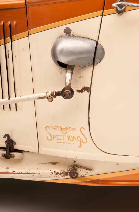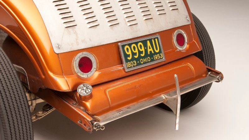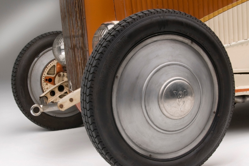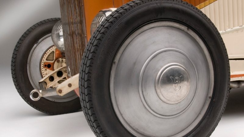 The Dynaliner’s “Bonneville Chop” roofline and hand-painted graphics scream racecar.  The streamlined nose and aluminum Rolls Royce-styled wheel covers further echo the Land Speed Racer aesthetic.