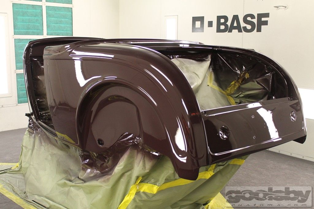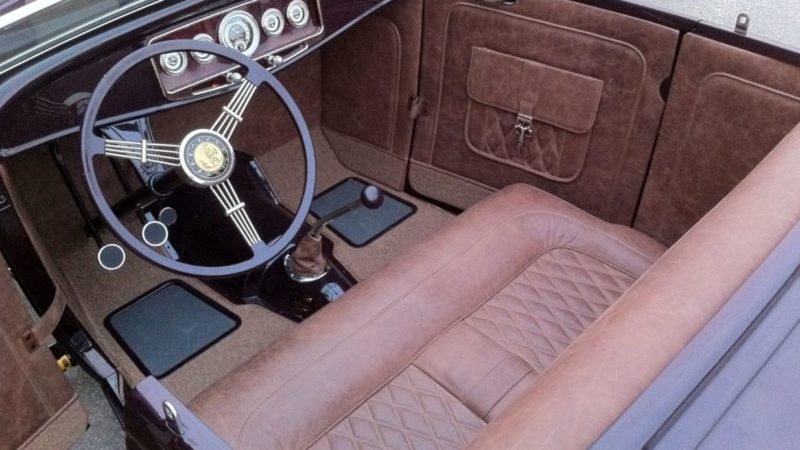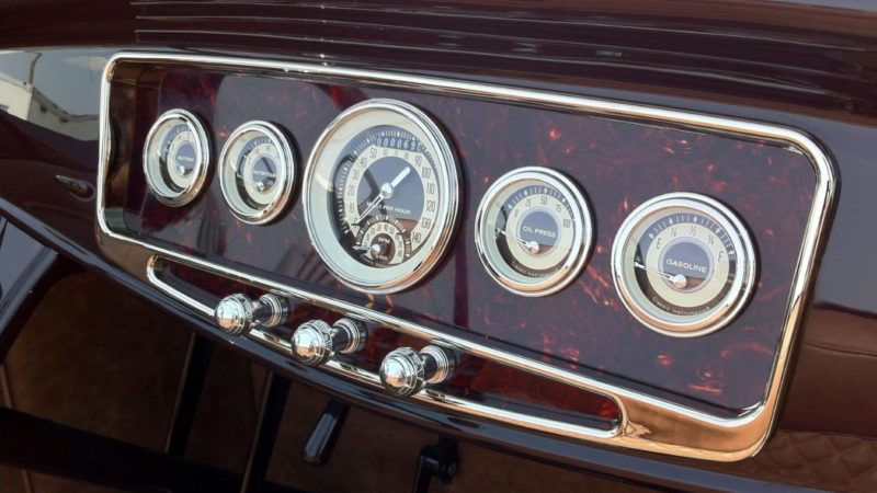 To complete the distinguished look, all of the nickel plating was done by our great friend Steve Tracy at Advanced Plating in Nashville. The paint to cover the body and chassis in the perfect maroon for that period look is BASF. As always to top it off our favorite trimmers Wayne and Pam at M&M Hot Rod Interiors handled all that stitching that really completes the “coachbuilt” look.