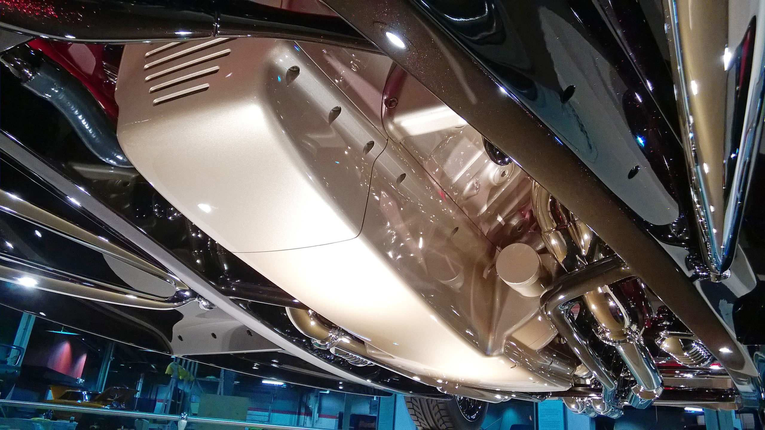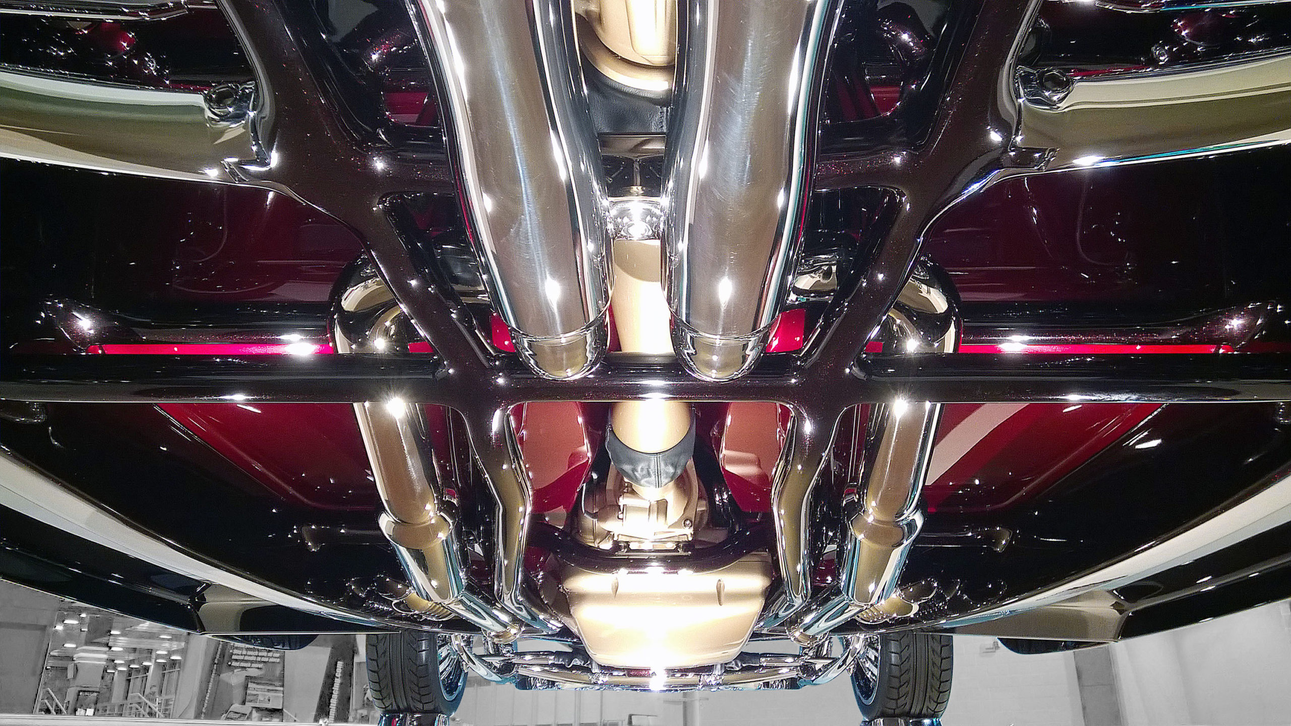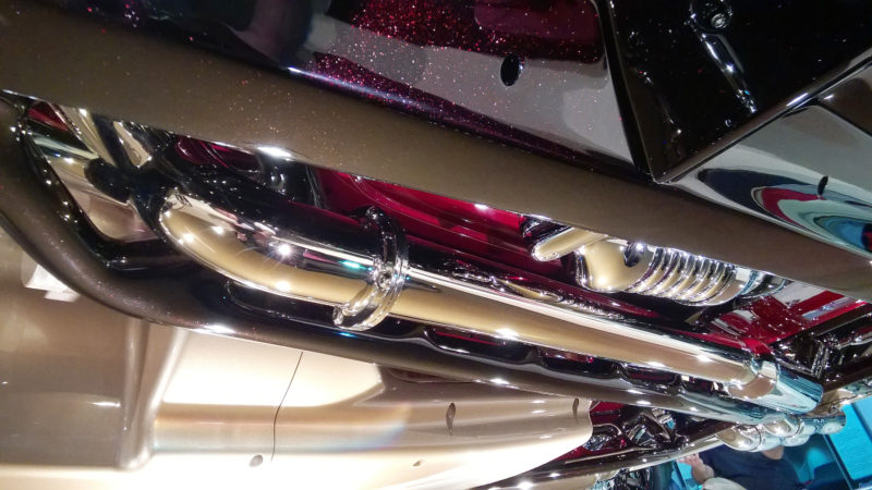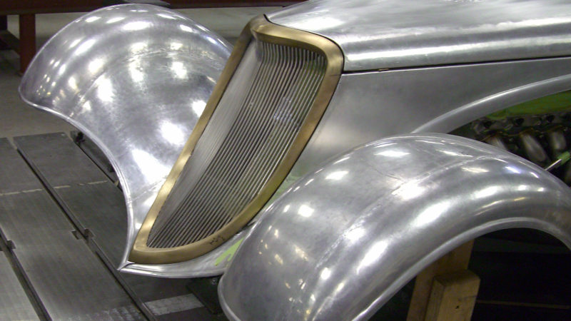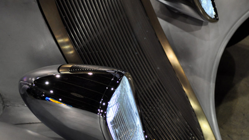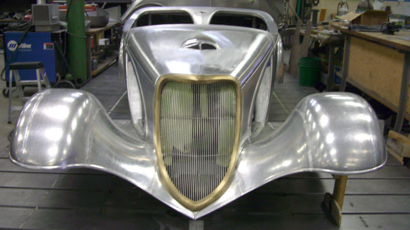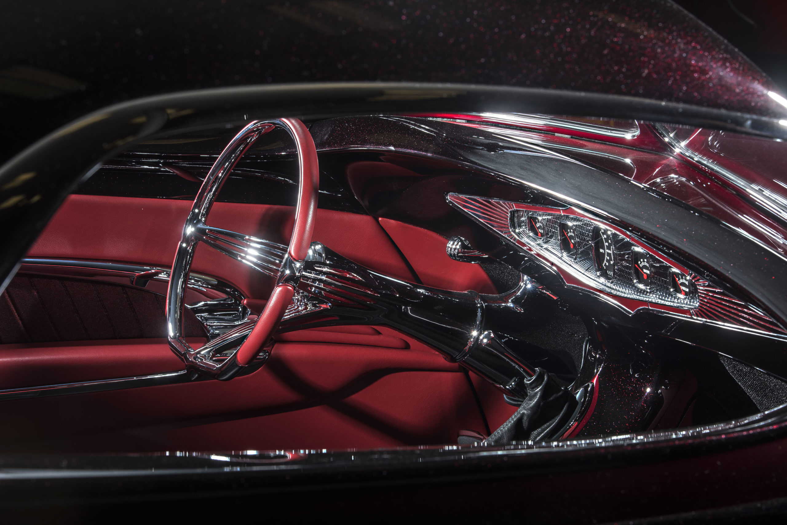 This rolling example of coach built artistry was hand crafted by the talented crew at Steve’s Auto Restorations specifically to compete in the 2017 Detroit Autorama. Appropriately christened as the Renaissance Roadster, this creation was never a car to begin with. It was created from a designer’s rendering by pen and pencil and the computer. Approximately 95% of the car is hand built. All body, fender and hardtop sheet metal is built “in house” out of hand formed aluminum. The chassis was built “in house” out of sheet steel and round tubing. All of the chrome plated trim was hand built either out of brass, steel or aluminum. Gauges were upgraded by Classic Instruments in a 1930 Nash gauge cluster provided by S.A.R. Chris Ito designed the outer profile and shapes of the car while in house designer, David Brost, did the remaining design work on the interior trim and steering column/steering wheel, engine compartment components, directional wheels and matching backing plates, and all of the chassis and suspension components. The wheels and hubcaps, backing plates, driveshaft, rear propeller shafts, “A” arms, uprights, third member cover, steering column, steering wheel, hood side trim, air cleaner base and top, and valve covers have all been designed on the computer and CNC machined as “one-off” parts. The headlights are “one-off” units as well as the rear bumper/taillight assembly. The engine is an aluminum 427 cubic inch block with a “one only” aluminum intake manifold and fabricated fuel injection in machined aluminum “look like” carburetors.
