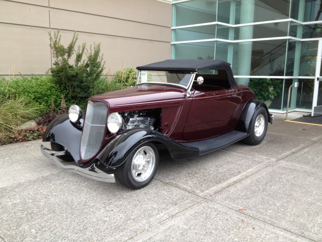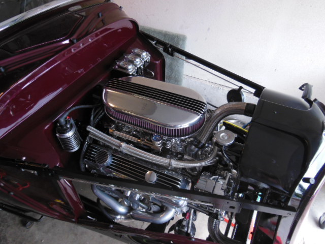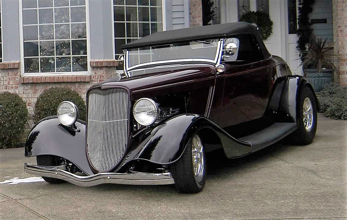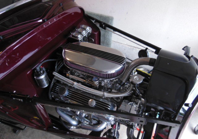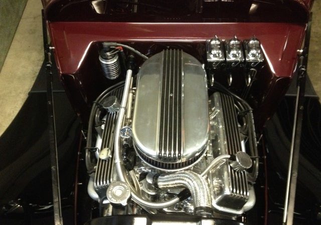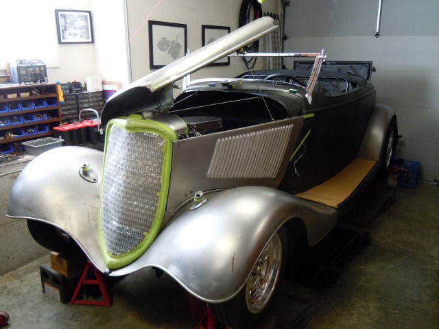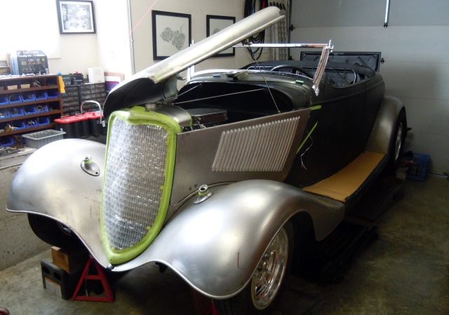 This project started with an empty space in the shop. (No donor Vehicle) The chassis is custom, built by Kreative Images located in Newberg, OR. The body & fenders were provided by Steve’s Auto Restorations. The majority of the parts and materials were purchased by the lead builder. This car has an original title and special purpose restored original 1933 license plate.