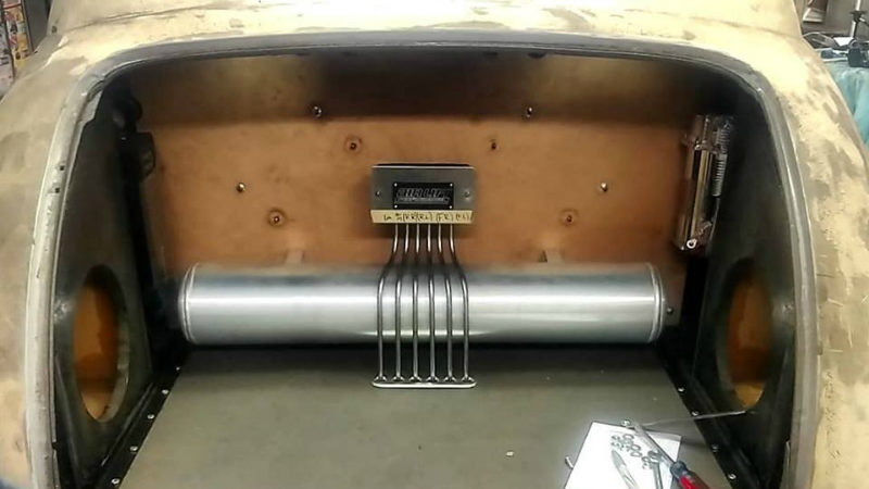 The Chevy is a long-running project for Luke’s mom, hence the name Tinmama. The car has been chopped, widened, and shaved. It sits on a chassis with a Nova Subframe, an independent rear suspension from a 2017 Mustang, and a full airbag suspension. Power will come courtesy of a fuel-injected 400 cubic-inch small block.