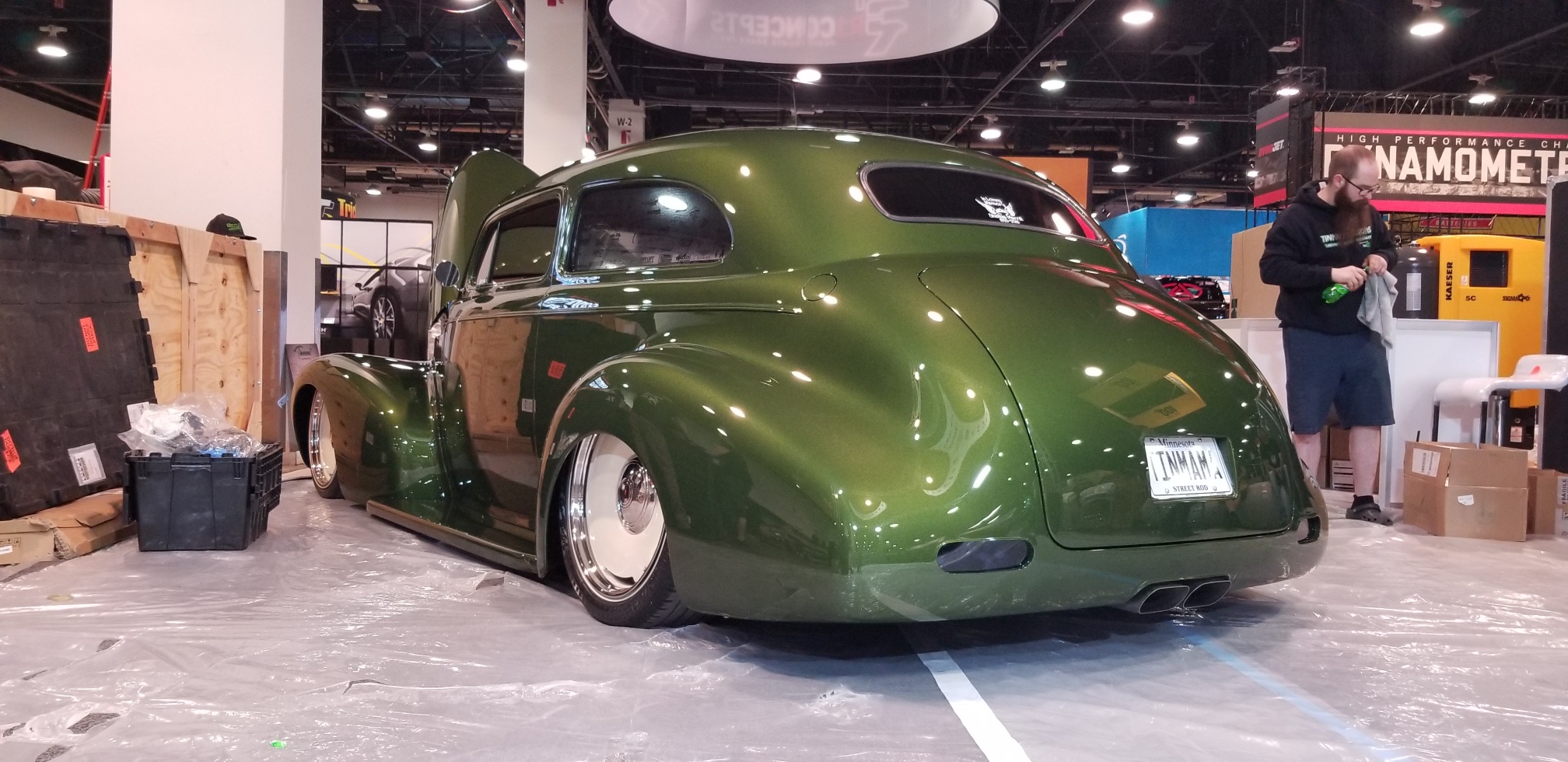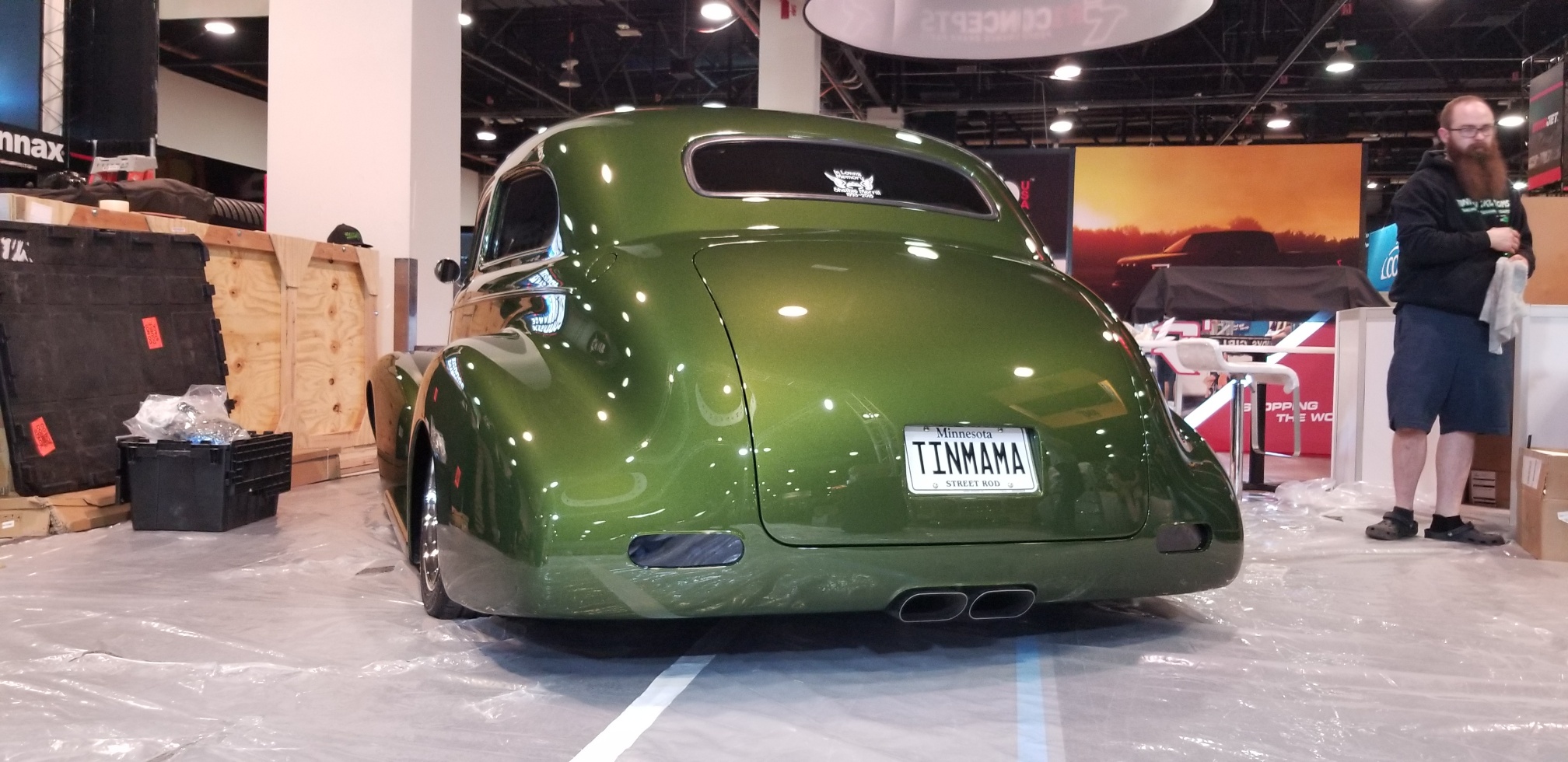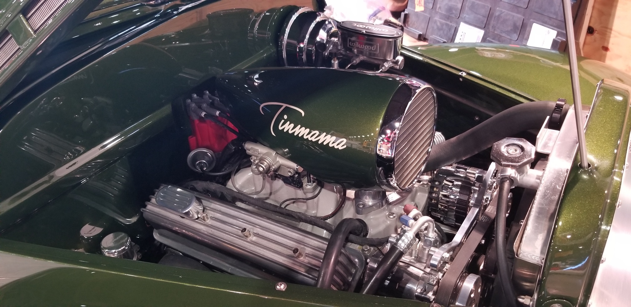 The Chevy is a long-running project for Luke’s mom, hence the name Tinmama. The car has been chopped, widened, and shaved. It sits on a chassis with a Nova Subframe, an independent rear suspension from a 2017 Mustang, and a full airbag suspension. Power will come courtesy of a fuel-injected 400 cubic-inch small block.