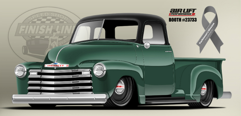When Steve and Keri met with Lyon to go over preliminary plans for Gordon’s truck, Lyon’s wife, Jennifer, immediately knew what to do next. Once again, Jennifer took back her annual phase of “We are taking a break from SEMA this year”. Instead, she made the decision that raising awareness regarding the need for a CURE for Parkinson’s should become Finish Line Speed Shop’s next #ProjectGivigBack. This will be Giving Back’s fifth year showcasing Hot Rod’s for a cause at the SEMA Show. Gordon Minty’s truck is the perfect truck to help with this year’s #PunchOutParkinsons CAUSE. Gordon’s 1949 Chevy Truck will be showcased in AIR LIFT PERFORMANCE’S booth #23733 during the 2019 SEMA Show. It, along with Project Giving Back’s 1978 C-10 Cancer Awareness build will then make their way over to the Dino’s Git Down Truck Show in Glendale, Arizona.