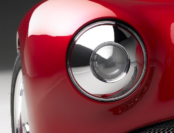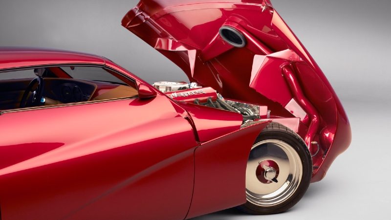 The shocking yet beautiful, shortened, widened, and chopped look is accentuated by its lift-off hardtop and tilting front end.
