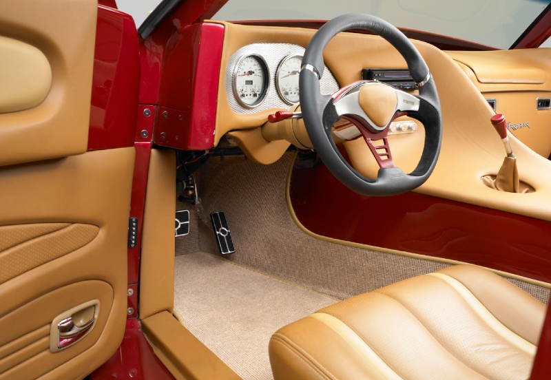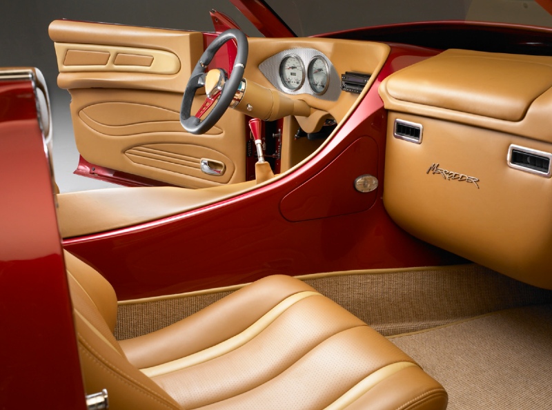A Meaney Brothers Big Stuff engine management system, dry-sump oil delivery and 180-degree headers finish out the package. The luxurious tan leather interior stitched by Larry Snead and Larry Bell takes second to no one.