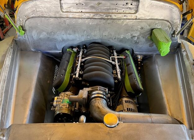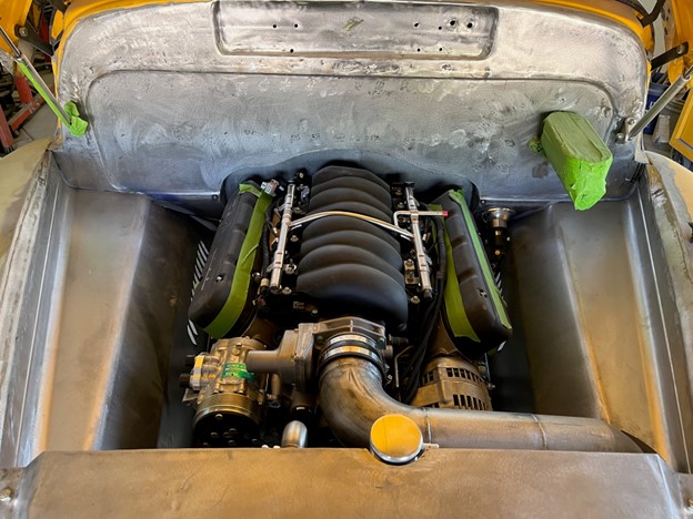 • Fabricated a bead-rolled firewall recessed to fit the motor's contour