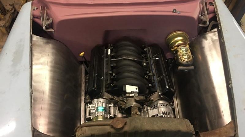 The engine that will be powering the four-door sedan will be a 6.0LS backed by a 4L80E transmission that will be painted to match the chassis. Looking from the outside, the engine will have a Vintage Air front runner system and stainless Sanderson headers followed by Flowmaster HP2 exhaust. The engine will be equipped with a 228/232 112 LSA Texas Speed cam. The car will be tuned by Futral motorsports out of Walker, Louisiana.