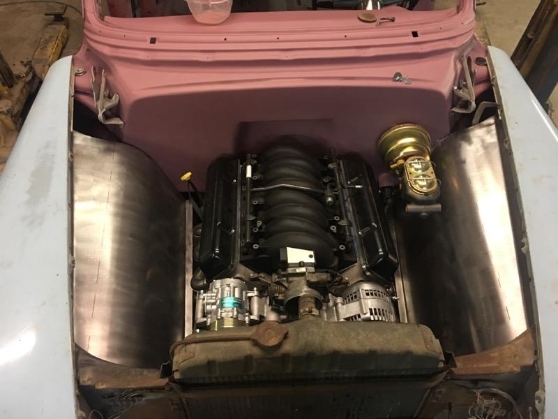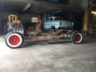 I am using the original chassis that will be sand blasted and painted or powder coated. The front suspension will consist of a Mustang II style independent, front suspension with rack and pinion steering. In the rear end of the car there is a custom six-inch C notch by Popeye's Rod Shop. As for air management, the car will be equipped with the Airlift 3H system backed by Viair compressors. The selection for wheels will be 20 x 9 Detroit Steel wheels on 245/35ZR20 white wall tires.