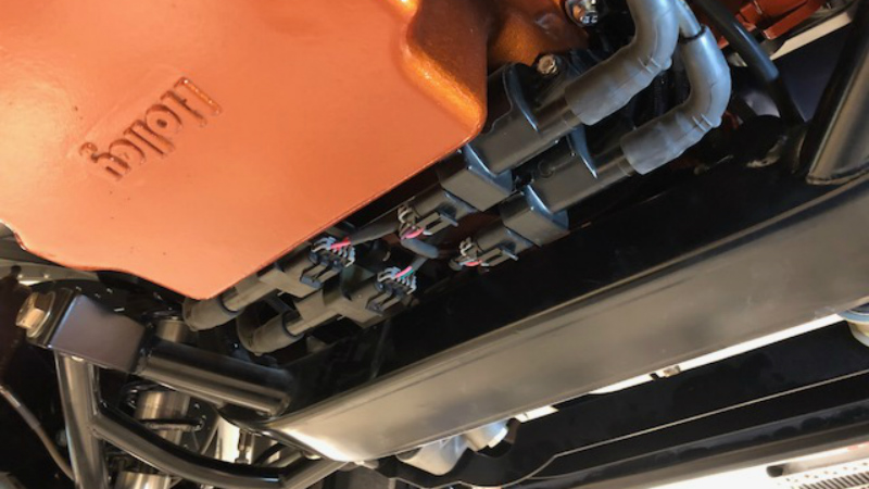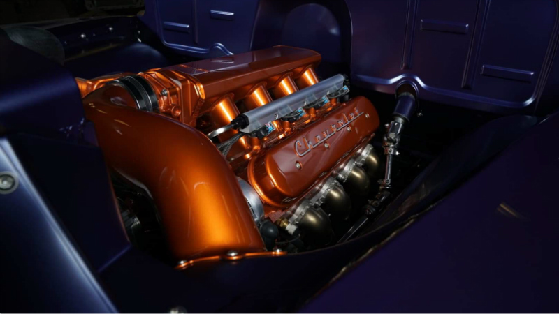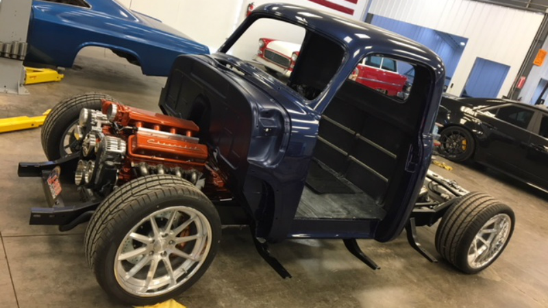 This truck came to us as an unfinished project someone started, but never finished... We ordered a Morrison chassis for a solid foundation and built from there! Micheal (the owner) chose the 480hp LS3 and 4L65 trans, which we detailed and simplified. painted the engine and trans, mounted the coils under the oil pan using Taylor Vertex wires, and groomed the GM wiring harness to help conceal the electronics, we used Ultimate headers and built a custom dual 3” stainless exhaust with Black widow mufflers. The Baer brakes have the orange accent color you will find throughout the truck. Micheal wanted a edgy look to the truck, so we went a little on the pro touring side... The Forgeline RB3C wheels have a big impact on that! The Morrison chassis and RideTech coilovers help achieve the perfect ride height without any sacrifice. We added an aluminum chin spoiler and a front tow hook for a little aggression.