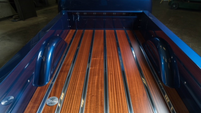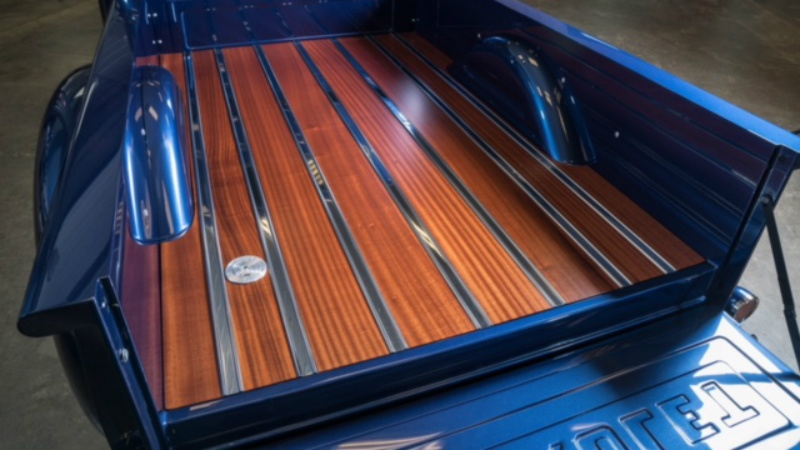 > On the interior we went to Jamie McFarland of McFarland Upholstery. Those guys did an amazing job using the distressed leather from Relicate Leather to finish the inside of the cab.